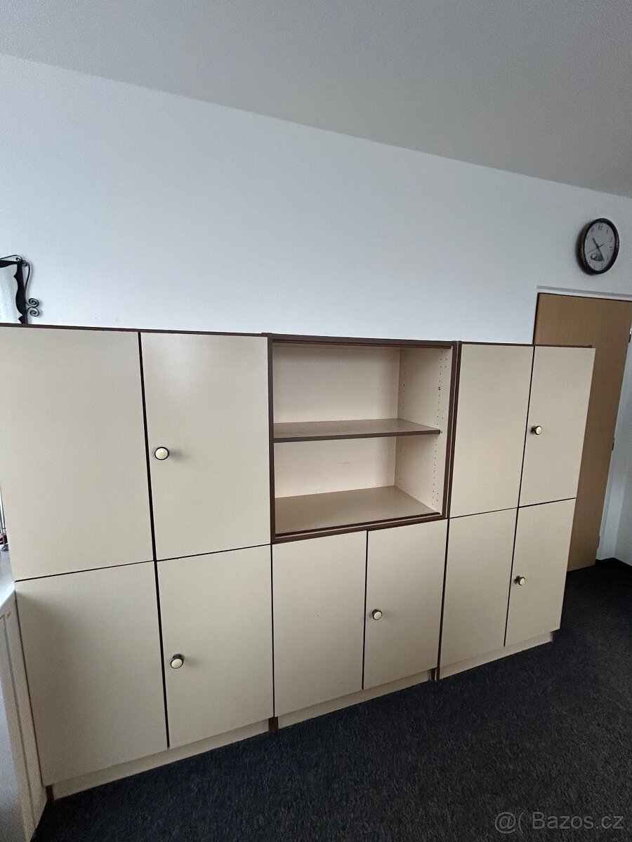 Nabízím starší kancelářský nábytek,3 x psací stůl (rozměr 145 x 72cm),sestava skříněk 3 ks -celkem 240cm ( rozměr jednotlivých skříněk š - 80 cm,h - 45 cm,v - 163cm )