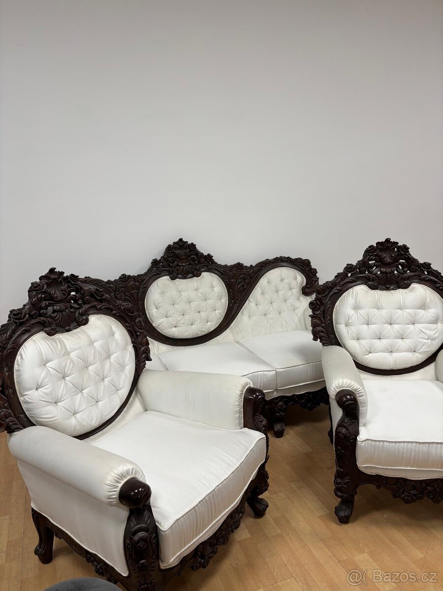 Z dovozu,zachovalá štýlová sedačka s pekným vyr.drevom,nerozťahovacia 3+1+1,Likvidácia tovaru,cena 1790€-400€ zľava teraz 1390€.Nie SMS.Obhliadka a odber priamo v Trnave,50km od Bratislavy.