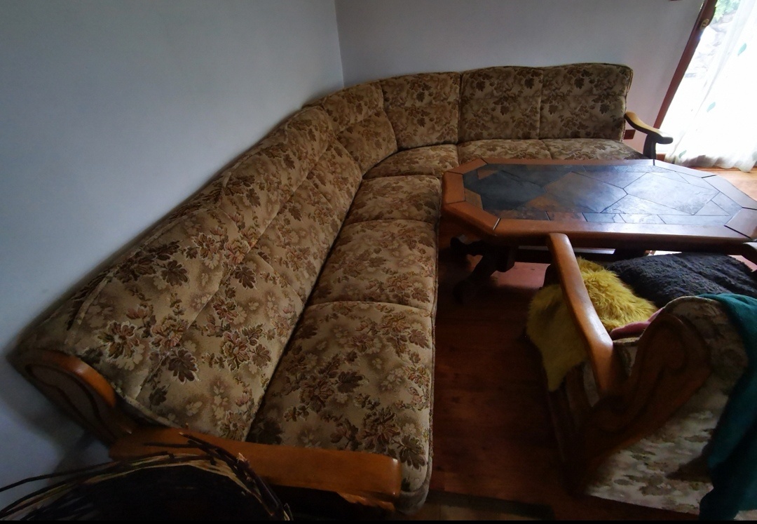 Rustikální rohový gauč a křeslo
