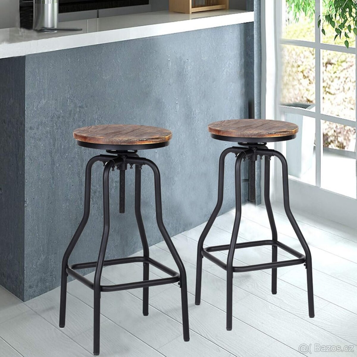 * Prodám kulatou barovou židli s borovicovým sedákem, kovovým rámem a nastavitelnou výškou.