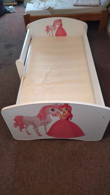 Prodám dětskou postel, kterou jsme kupovali z druhé ruky k prarodičům, ale nakonec jsme ji nevyužili. Postel je v pěkném stavu, včetně matrace.