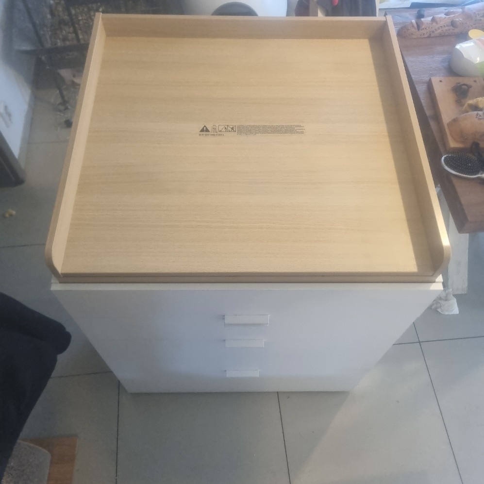 Prodám komodu. Komoda má výšku 99 cm, šířku 85 cm a hloubku 44 cm. Přebalovací pult 82x77 cm. Jediný problém je, že čepy co drželi šuplíky vylomili díry v dřevotřísce na šuplíku a šuplíky tam potom nedrželi, ale opravil jsem to tak že jsem tam vložil kus dřeva do kterého jsem navrtal díry a teď tam drží šuplíky dobře.Je to vidět pouze když se vytáhne šuplik.Je to vyfocené na poslední fotce Jinak je komoda v perfektním stavu.