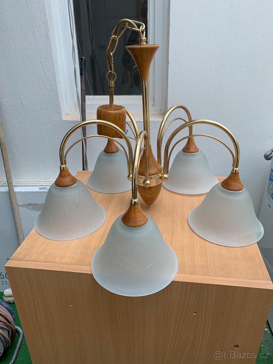 Prodám pětiramenné stropní světlo, zlatý kov, sklo. Osobní odběr Frenštát pod Radhoštěm. Po dohodě možnost odběru Praha (120 00), nebo Karviná (734 01)