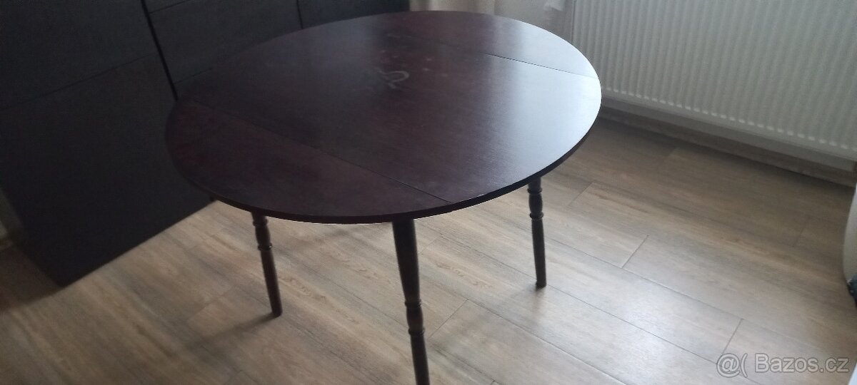 prodám tento starší, dřevěný, jídelní rozkládací stůl. průměr 1,1m.