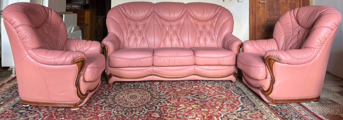 Luxusní italská kožená sedací souprava 3+1+1, 5252 - [10.2. 2026]Nabízím k prodeji luxusní italskou koženou sedací soupravu ve starorůžovém odstínu.