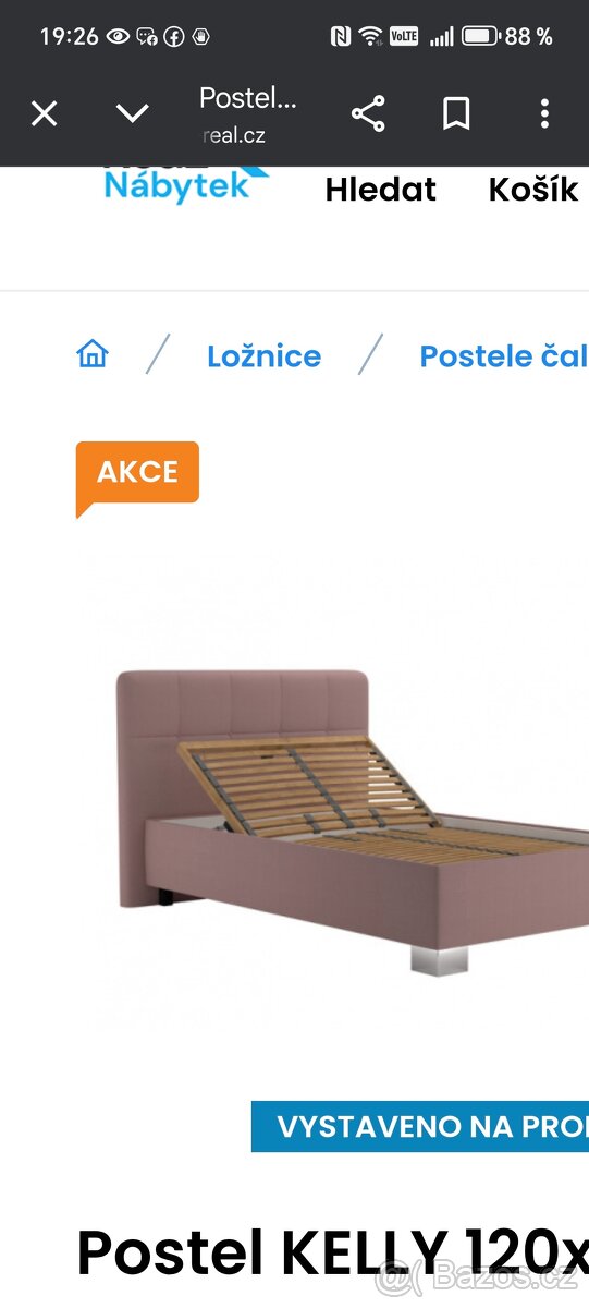 Prodám čalouněnou postel 120x200cm s čelem.Postel používána asi rok bez matrace s polohovacím roštem.Super stav