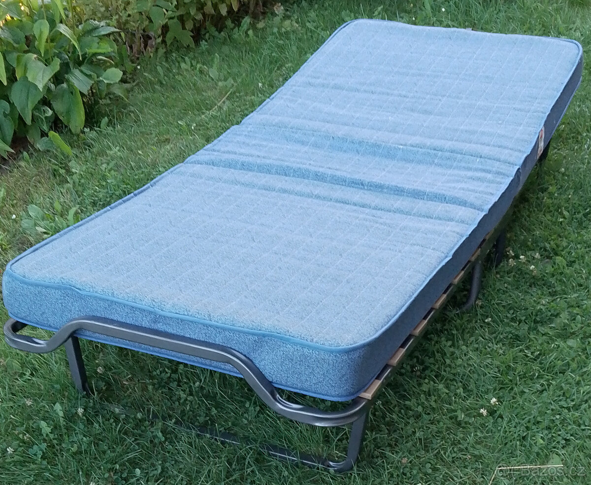 Skládací postel - [15.2. 2026]Rozměr matrace 80x180x10 cm, Ocelový rám, Součástí postele je matrace o výšce 10 cm a kryt na matraci.
