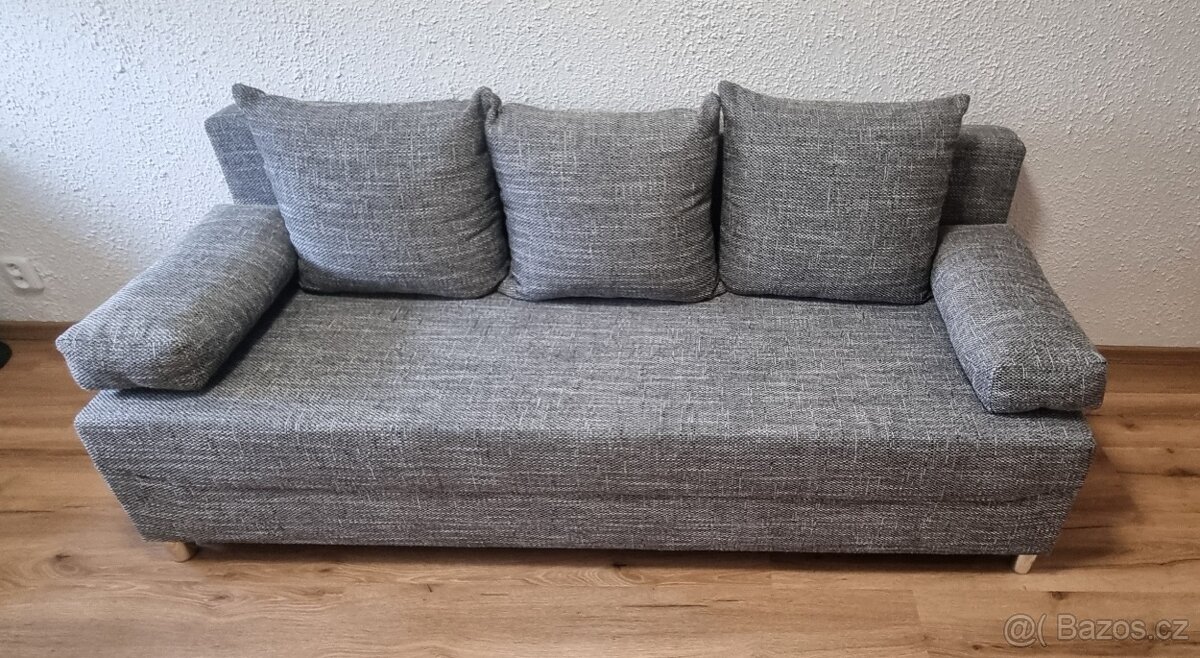 Rozkládací pohovka - [10.2. 2026]Prodám rozkládací pohovku. Stará 2 roky. Delka 190cm, hloubka 85cm, vyska 40cm. Po rozlozeni ma luzko rozmery 110x190cm.