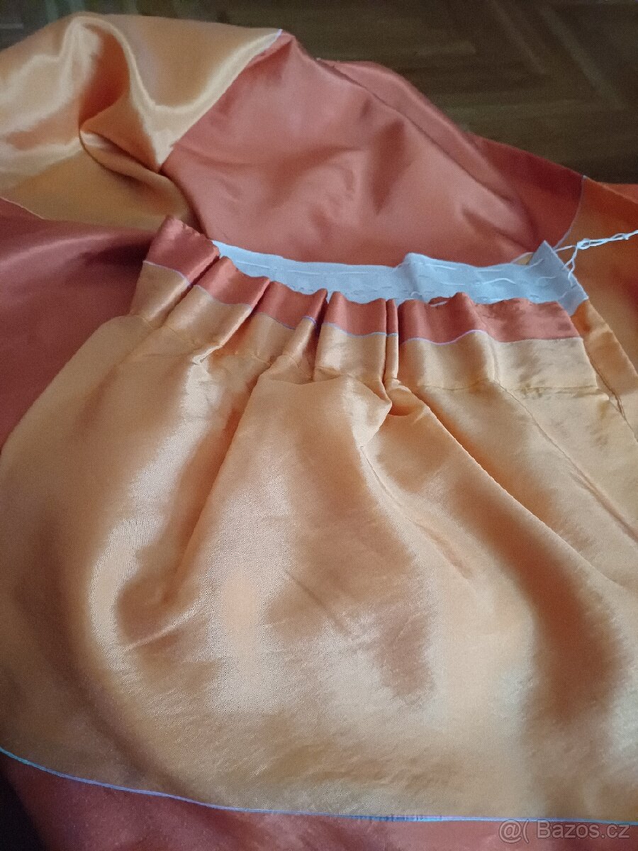 Prodám 2ks zcela nový, nikdy nepoužitý závěs. 300cm dlouhý x 145cm široký. Barva oranžová - světlá a tmavá. Horní okraj je opatřen stuhou, umožňující řešení.