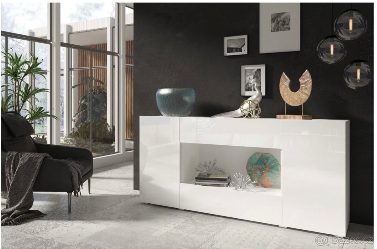 Prodám moderní kombinovanou komodu DELOS v provedení bílý vysoký lesk.