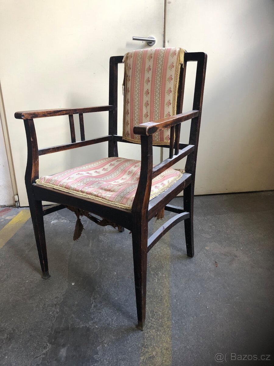 Historické pěkné křeslo na prodej , opravu čalounění , cena 1400