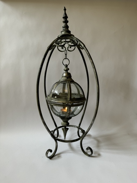 Kovová lucerna na svíčku, výška 73 cm, průměr 38 cm, průměr odklápěcí lucerny s pojistkou 20,5 cm, svíčka není v ceně, váha celkem 2,40 kg.