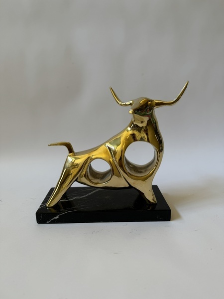 ART DECO - BRONZOVÁ SOCHA BÝKA NA MRAMORU