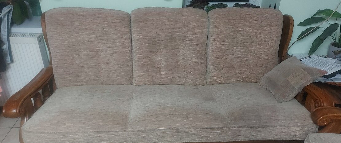 Zachovalá, neprosezená sedací souprava z masivu, rustikální, rozložení 3+2+1.