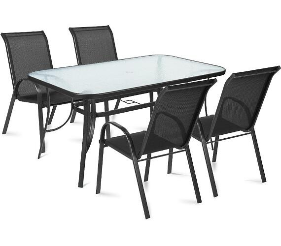 Prodám krásnou sestavu FIELDMANN, kovový stůl s deskou z čirého tvrzeného skla 150x96x71, 4 křesla z pružné syntetické textilie, velmi pohodlná...nábytek je používaný,ale ve velmi dobrém stavu, možnost umístění slunečníku,vlastní odvoz, cena k jednání