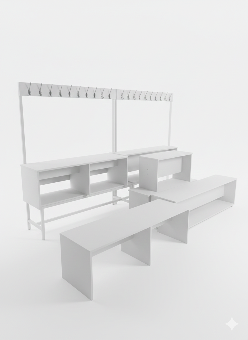 Sportovní nábýtek do šatny. Šatna. Lavička, Věšák