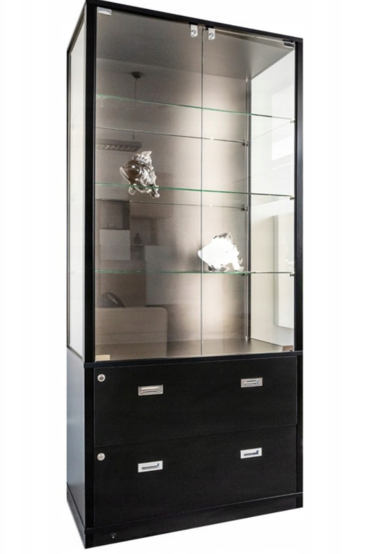 koupím skleněnou vitrínu se skříňkami (1 - 2ks podle šířky), na způsob fotek.