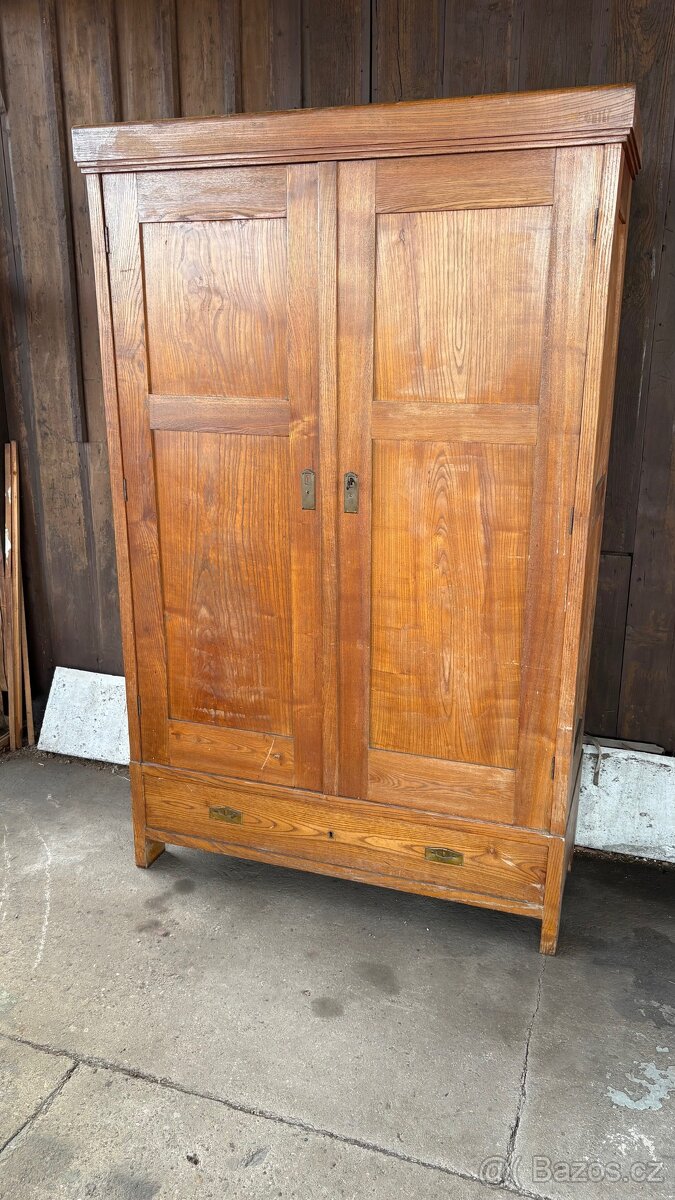 stará dřevěná skřín masiv - [5.2. 2026]Třídílná, nepoškozená, do dnes ve vytápěné ložnici, zámky fungují, škoda ji rozřezat. Ke třídílné máme ještě dvoudílnou bez poliček, taje o díl kratší 150 cm. Cena za ks.Odběr v Srbsku u Berouna.