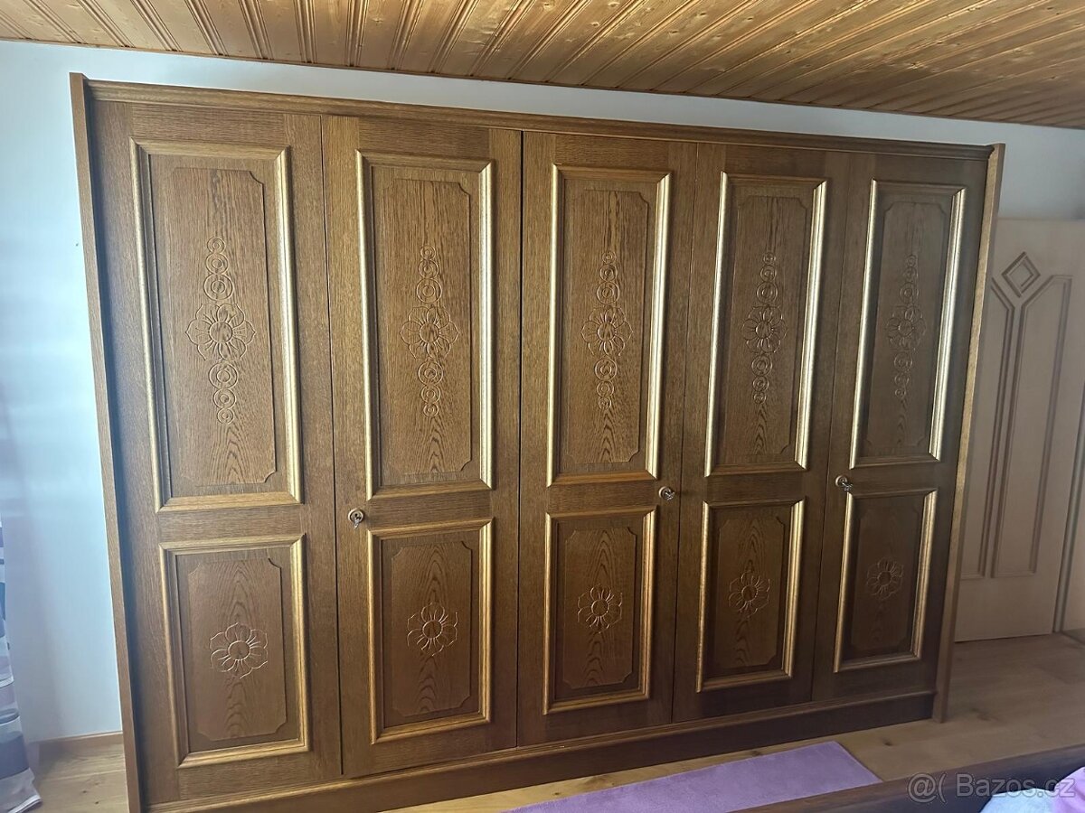 dubová, 5 dvéřová šatní skříń, rustikálního stylu