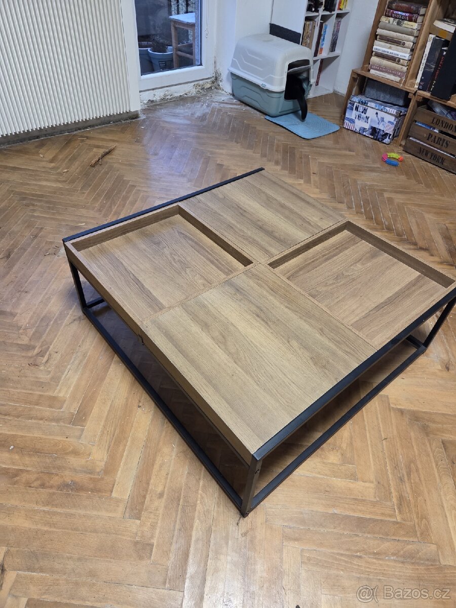 Prodám konferenční stolek o velikosti 80x80 cm výška 30cm. Variabilní vrchní deska viz foto. Stav velmi dobrý.