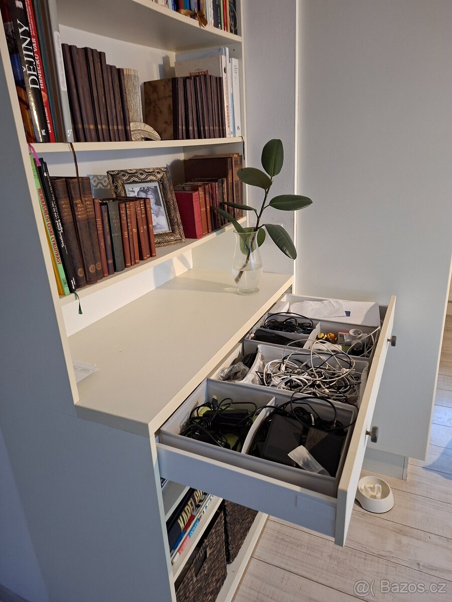 Prodám knihovnu,dělanou na míru.Nepoškozená. Původní cena 10000 Kč Výška knihovny je 260 cm, šířka 112 cm, hloubka v horní části je 30 cm a v dolní části 51 cm. Jeden šuplík. Police se dají polohovat.
