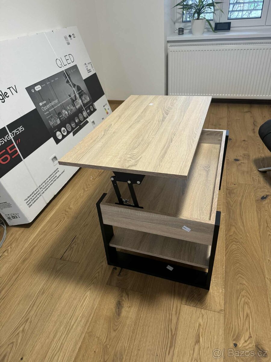 Zvedá se to rukama je tam píst , který to pomůže zvednout a je tam zajištění ,takže deska nemůže sama klesnout zpět .Vždy se vrací zpět pomoci rukou. Vnitřní rozměry jsou š-46cm, d-87,hloubka 10cm.