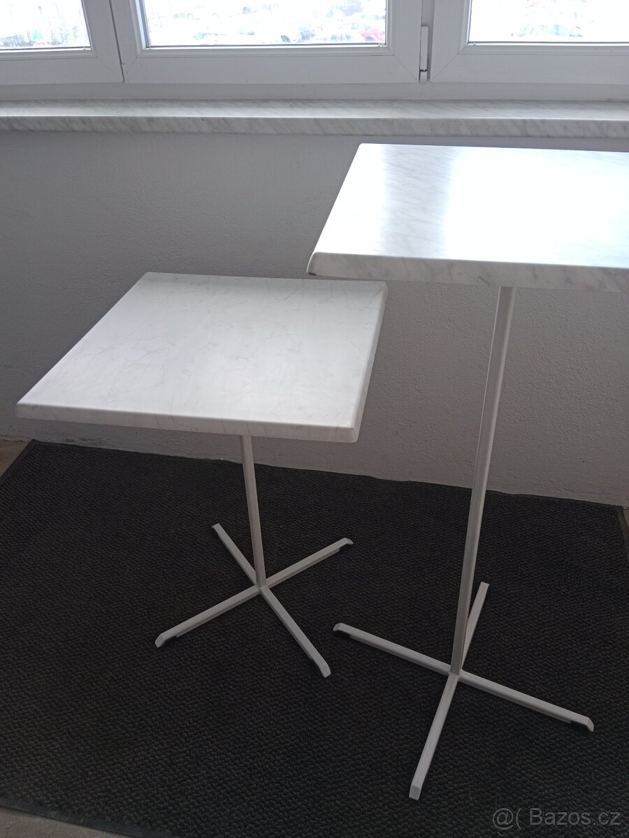 Prodám nové barové stoly dvou velikostí, které jsou vhodné pro venkovní a vnitřní použití. Werzalitová deska je voděodolná.