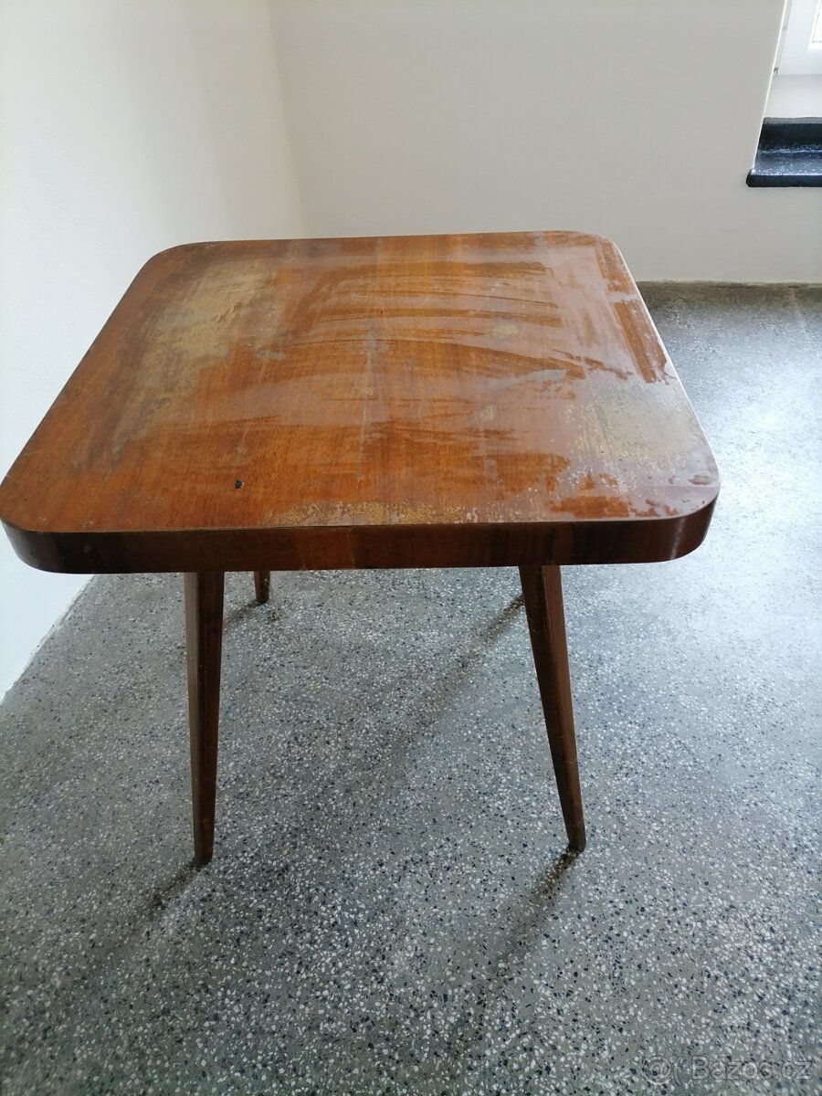 Vyklízení nemovitosti - prodám retro stůl, nálezový stav. Rozměr 65x65cm.
