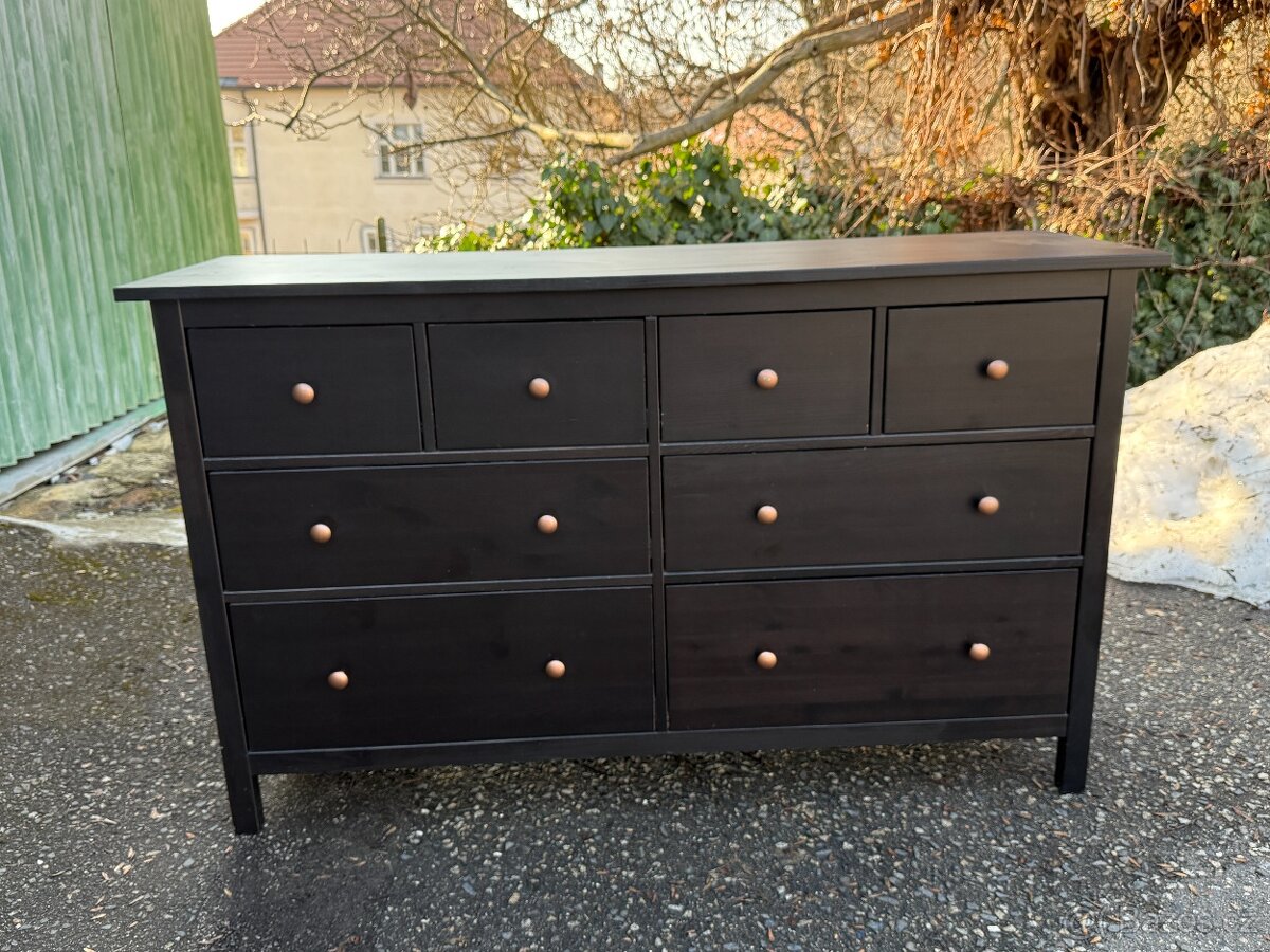 Prodám zachovalou komodu IKEA Hemnes v černohnědém provedení, již se v této barvě nevyrábí, znamky uzivani , k vyzvednutí na Praze 8 Kobylisy, nebo lze dovézt za 500 kc po Praze, popřípadě po domluvě i dále.