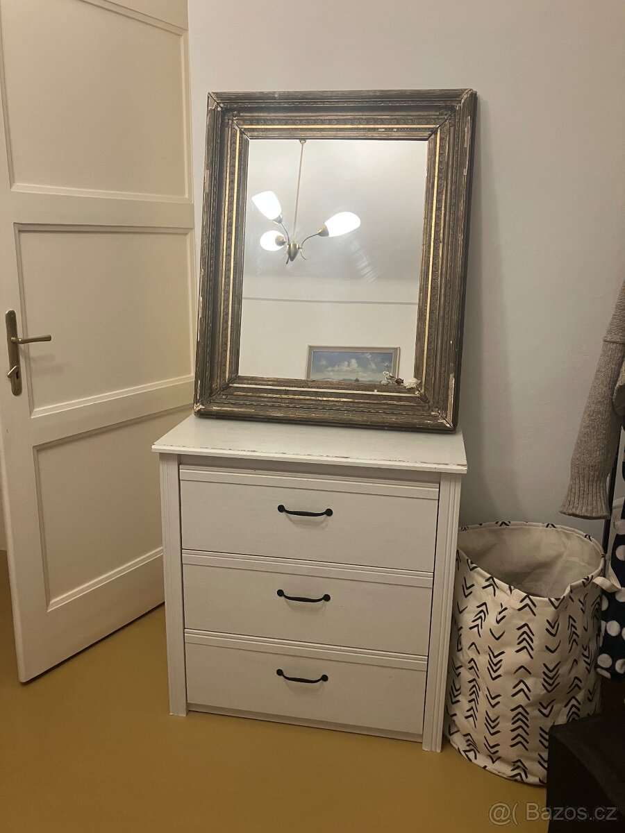 Komoda se třemi zásuvkami s taburetkou a zrcadlem - [29.1. 2026]Komoda bílá se třemi zásuvkami s taburetkou a zrcadlem.