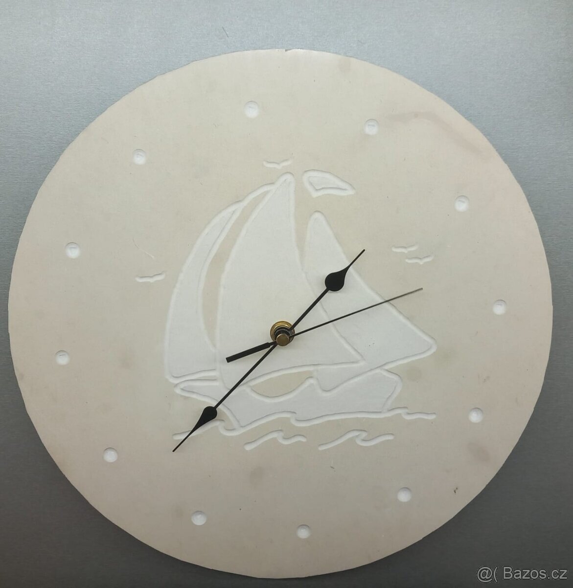 Krásné nástěnné hodiny z kamene průměr 30 cm.