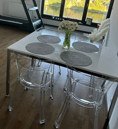 Stůl Vihals Ikea bílý lesk, použitý jen pár měsíců, skoro nový, židle Stein Ikea použité jen pár měsíců. Stůl 1000 Kč, Židle 4x 1000 Kč (původní cena jedné židle je 1790 Kč) Prodávám vcelku za 5000 Kč z důvodů stěhování do zahraničí. Na mejly typu "platím předem, zajistím kurýra neodpovídám"