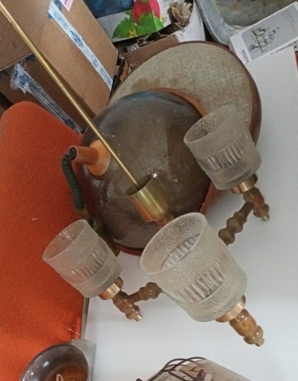 Prodám tři ramenný lustr, materiál kov a dřevo, cena 200 Kč