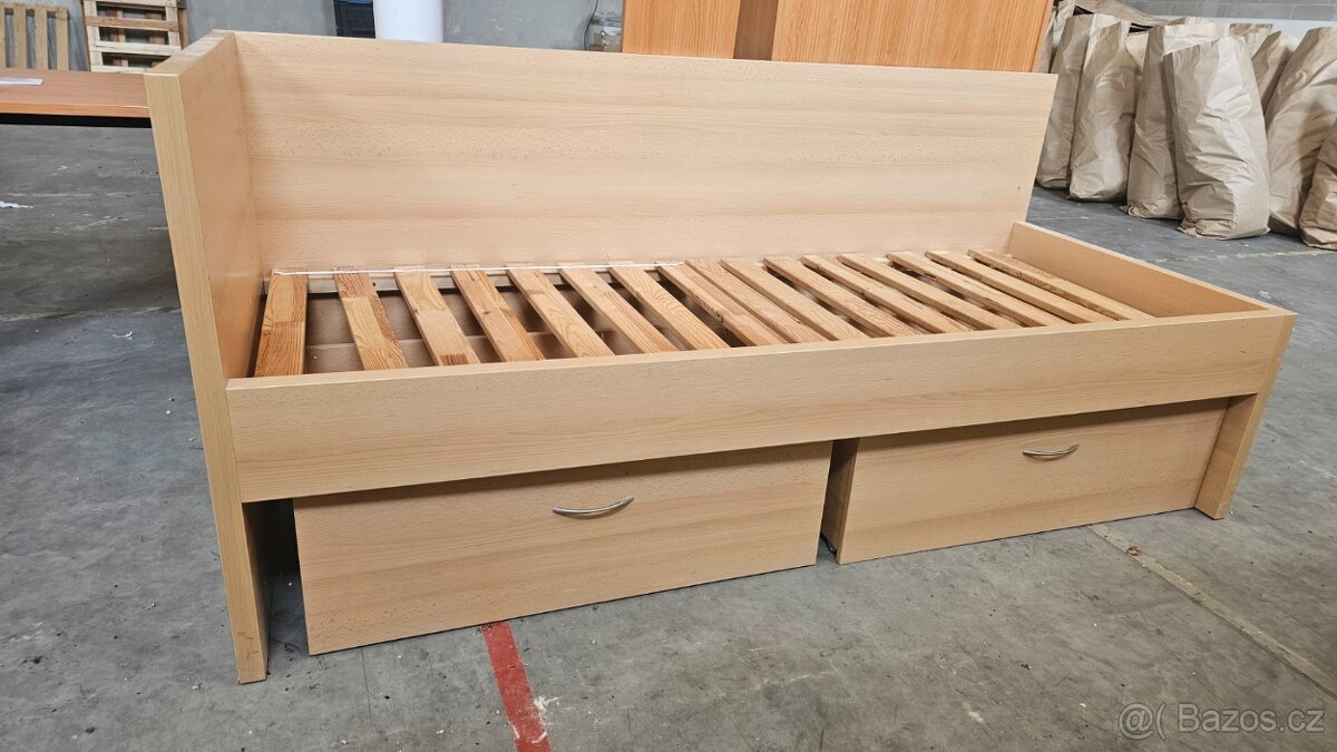 prodám postel z dvojité desky se dvěma šuplíkama a pevným roštem.
