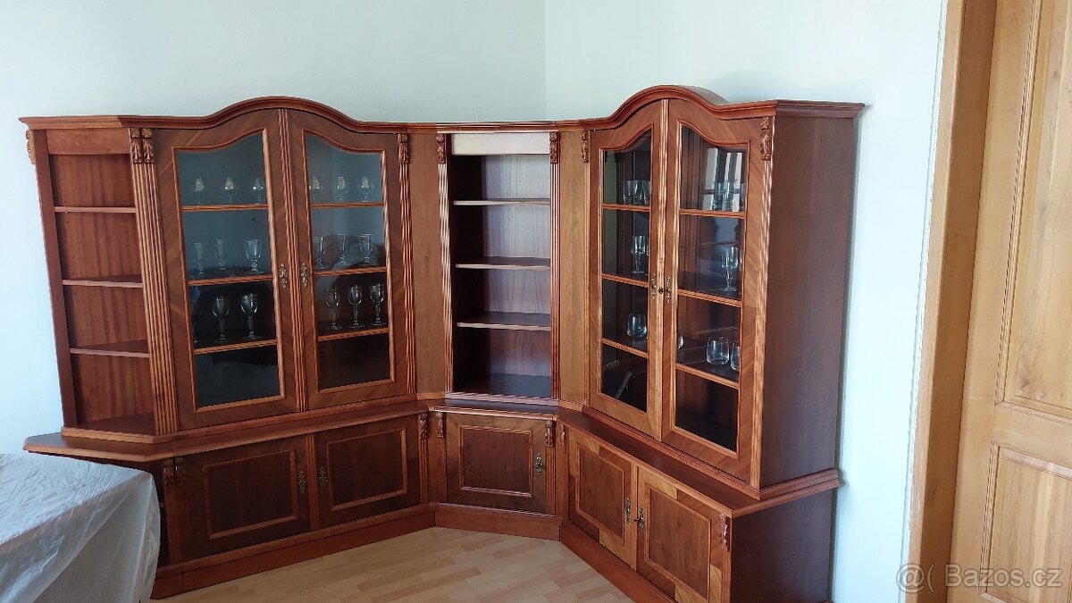 Prodám knihovnu rohovou hloubka 500, výška 1930mm v klasickém stylu vhodný do interiérů historických nemovitostí. Nábytek je nepoužitý, pohledové laťovkové desky jsou dýhované ořechovým dřevem. Vnitřní desky jsou dýhované dřevem z mahagonu. Ozdobné lišty a dekorace jsou z masivní olše.