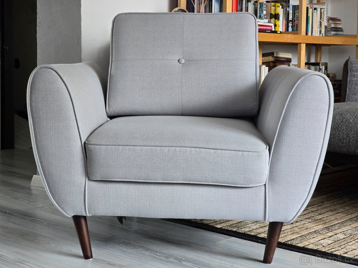 Elegantní, prostorné, pohodlné, kvalitní křeslo, které může být originálním moderním solitérem, ve stavu nového (minimální používání). Nyní za výrazně nižší cenu 3.000. Barva světle šedá.