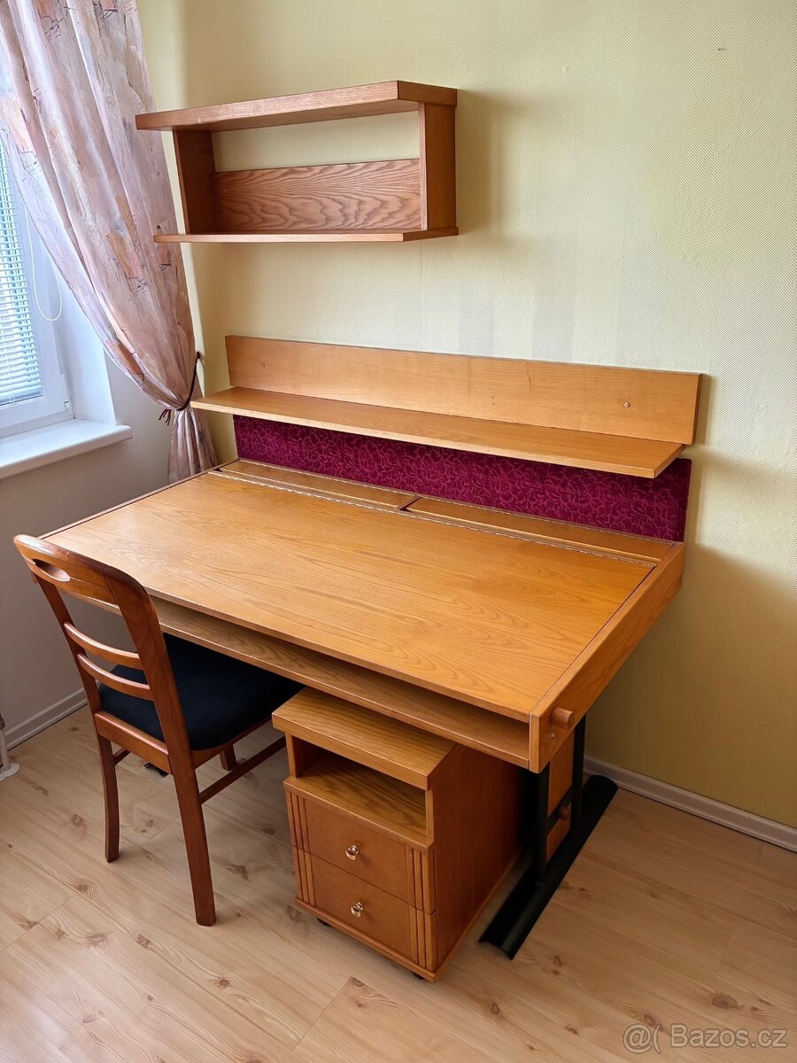 Psací stůl z masivu 180x75 cm - [12.2. 2026]Velice zachovalý psací stůl z masivu. Rozměr 180x75 cm, s odkládacím prostorem – policí a vysouvací deskou. Bez oděrek a poškození. Ke stolu jsou i šuplíky z masivu a čalouněná židle - viz další moje inzeráty.