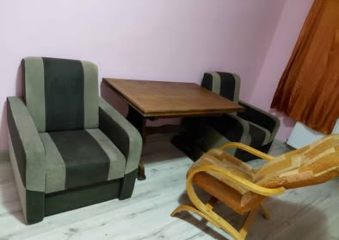 Sestava nábytku: 2 čalouněná křesla, pohupovací křeslo a stůl