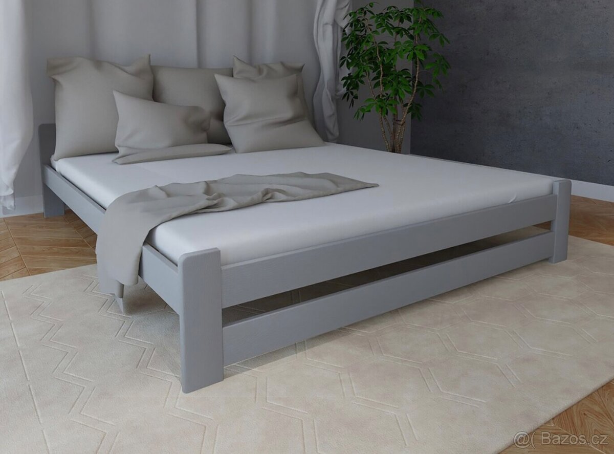 Postel je NOVÁ vyrobena z masivního borovicového dřeva a lakována na šedo.