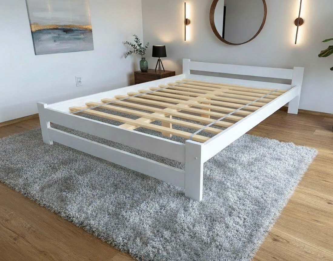 Nová postel 180x200 cm borovice bílá s roštem - [12.2. 2026]Postel je NOVÁ vyrobena z masivního borovicového dřeva a lakovaná na bílo. Součástí je také laťkový roštem.