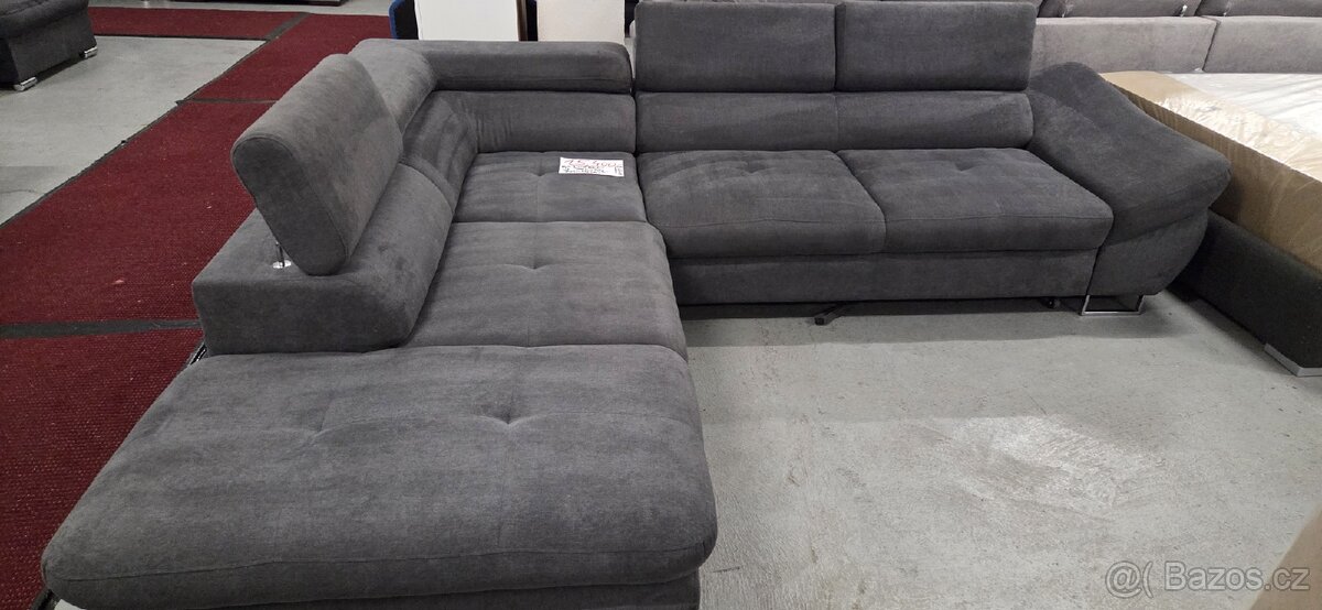 Rohová sedačka - [11.2. 2026]Zánovní rohová sedačka 300x160 cm, vzhled broušené kůže, polohovací opěrky hlavy, pohodlná, kvalitní.