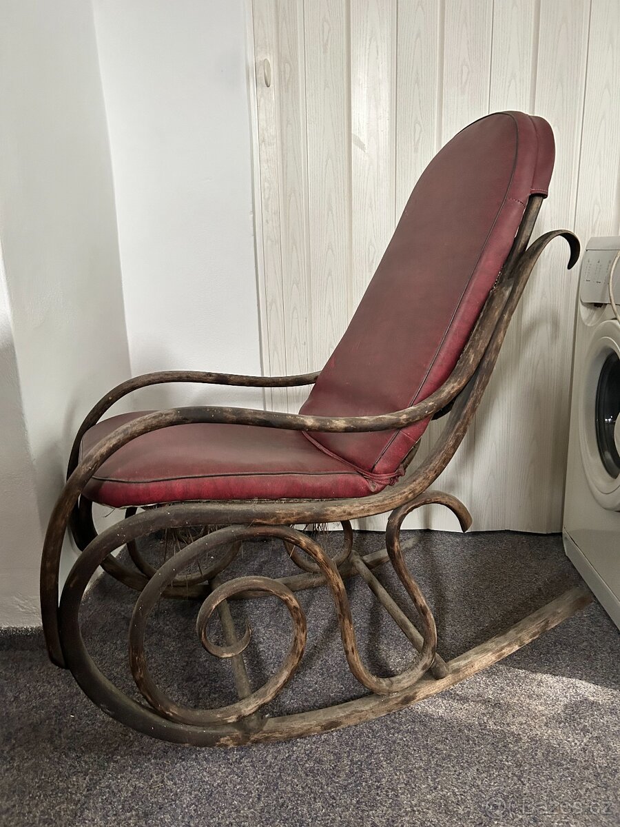 Prodám starožitné houpací křeslo TON k renovaci. Výplet v sedací části poškozen, proto byl pořízen polstr.
