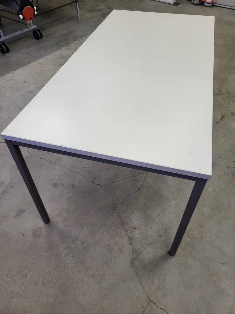 Stůl šedý, deska lamino, rám a nody ocel. jakl, 160 x 80 cm, výška 72 cm.