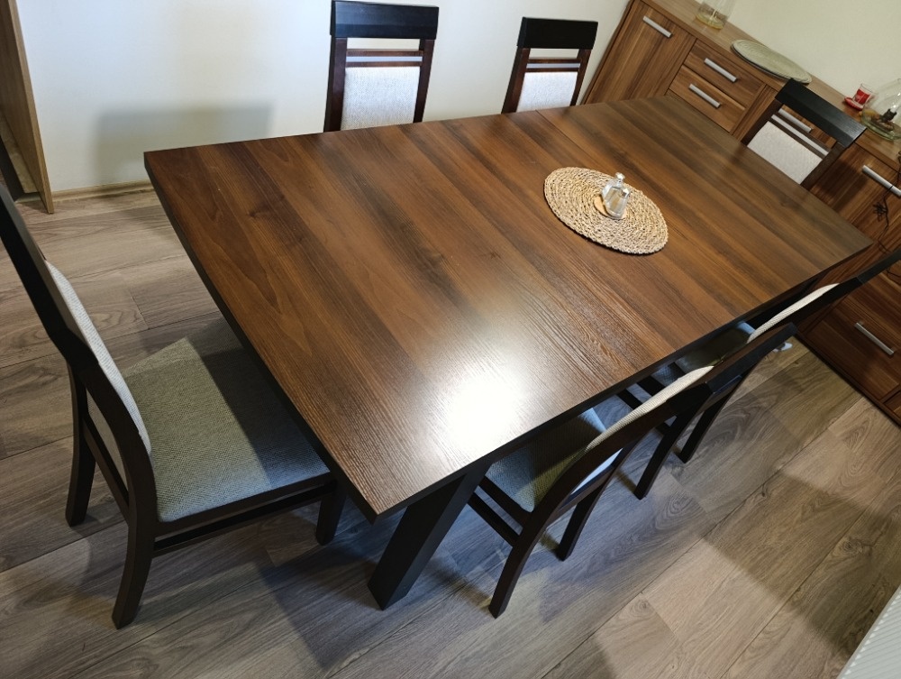 Stůl rozkládací jídelní a 6 židlí - pěkný stav - TOP - [14.2. 2026]Stůl rozkládací jídelní a 6 židlí - pěkný stav. Délka stolu 135 cm a po rozložení 180 cm. Bližší informace na telefonu, nebo na email. Nekuřácká domácnost, bez domácích mazlíčků. Zajišťujeme dopravu po celé ČR (cena dopravy dle aktuálního ceníku naft ...