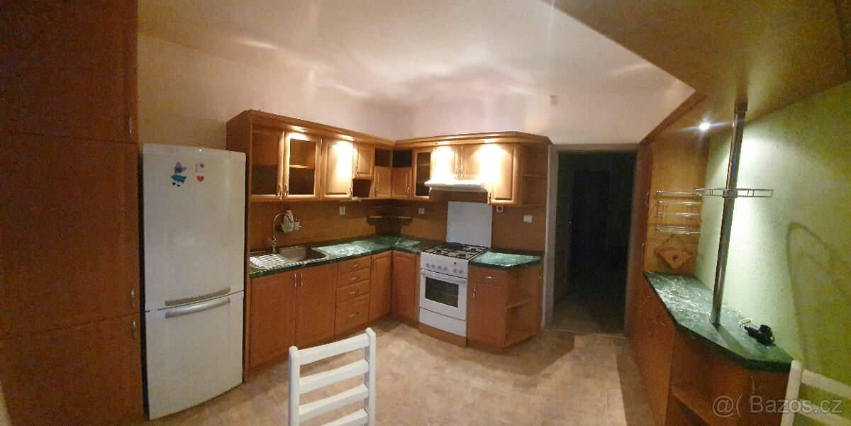 Nabízím prostornou používanou kuchyňskou linku ve tvaru L + další skříňky včetně rampy s osvětlením, drátěný program, plynový sporák s elektrickou troubou. V případě zájmu můžeme přenechat i jídelní stůl se 4 židlemi.