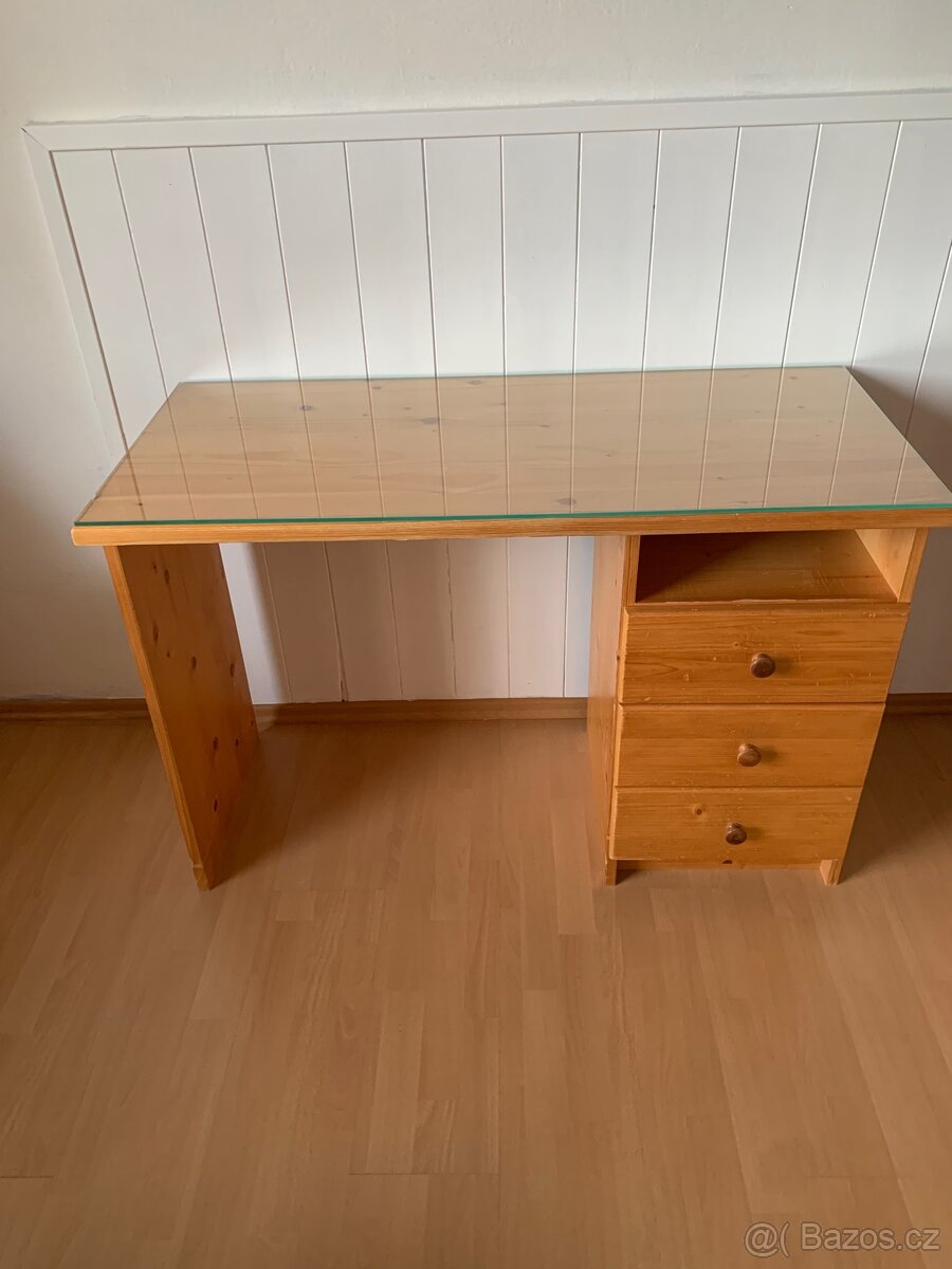 Psací stůl - [8.2. 2026]Prodám 2x dětský psací stůl, materiál smrková biodeska
