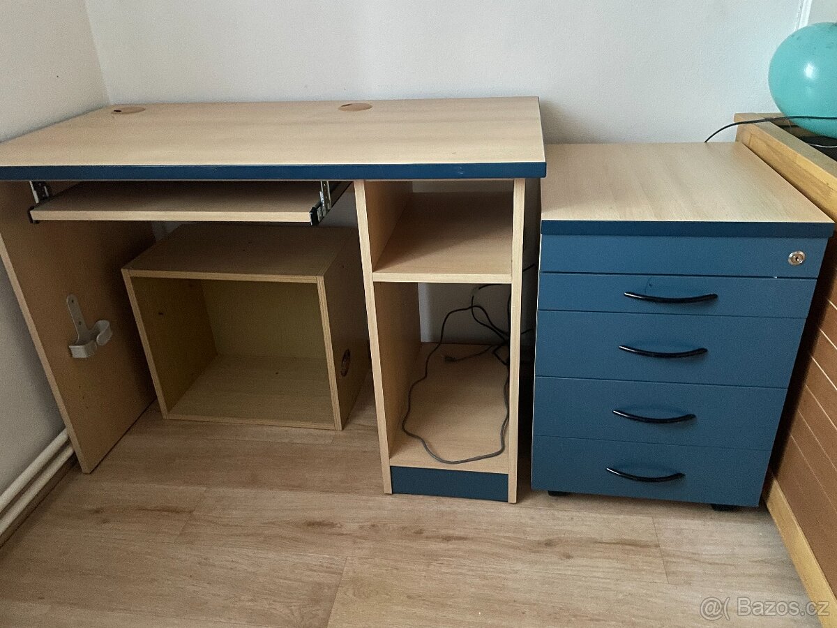 Prodám pracovní stůl + kontejner. Kontejner je pojízdý na kolečkách s aretací, pouze klíčky k uzamknutí kontejneru nejsou.
