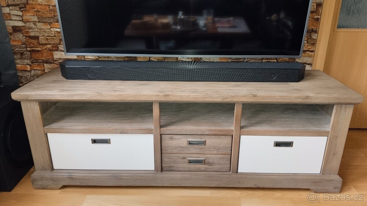 kový televizní stolek z drásaného masivu v super stavu.Šířka 150cm,výška 50 cm, hloubka 50 cm,váha 40 kg.Možnost otáčení šuplíků a změna barvy.