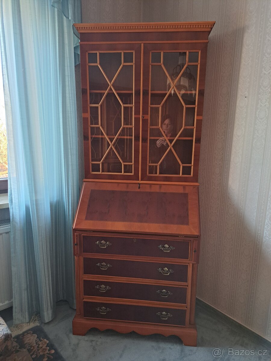 Nabízím k prodeji pěknou vitrínu, knihovnu, písař, možnost rozložit na psací stůl.
