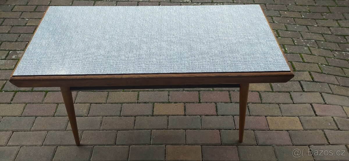 Prodám konferenční stolek kolem r. 1960, deska otočná - žlutá a šedá ( černobílé káro ), stabilní konstrukce z masivního dubu rozměry 54 x 114, výška 60 cm, velmi zachovalý stav. Jen osobní odběr.